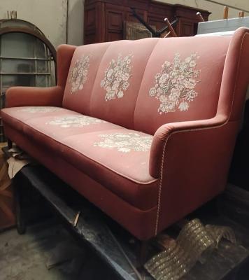 Divano a tre posti con tessuto vintage dell' epoca,anni 50
