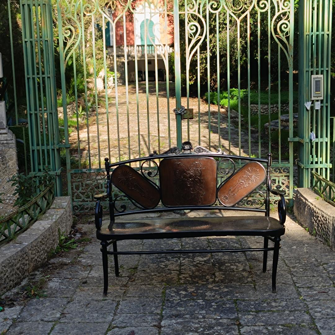 Divanetto in faggio curvato produzione viennese ditta Kohn di cui porta cartiglio originale
