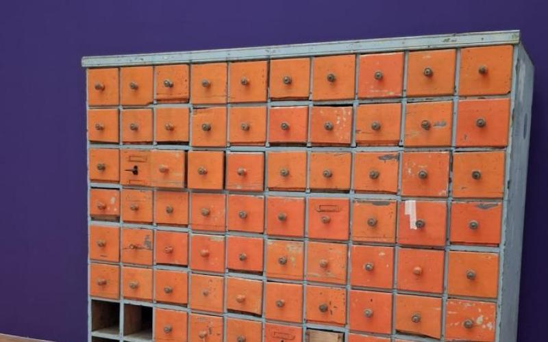Cassettiera in legno massello colorato; epoca '800/'900 Categoria Mobili a cassetti - Drawer cabinets Archeologia industriale - Industrial furniture Arredo negozio - Forniture for shops Novità - New Entry
