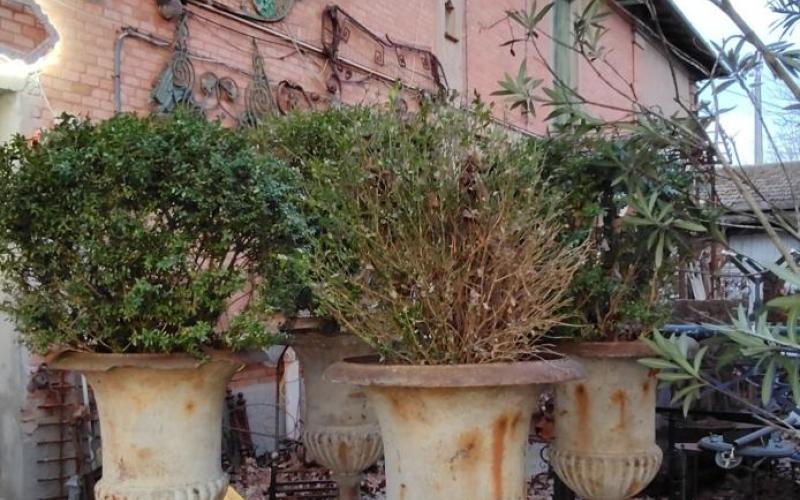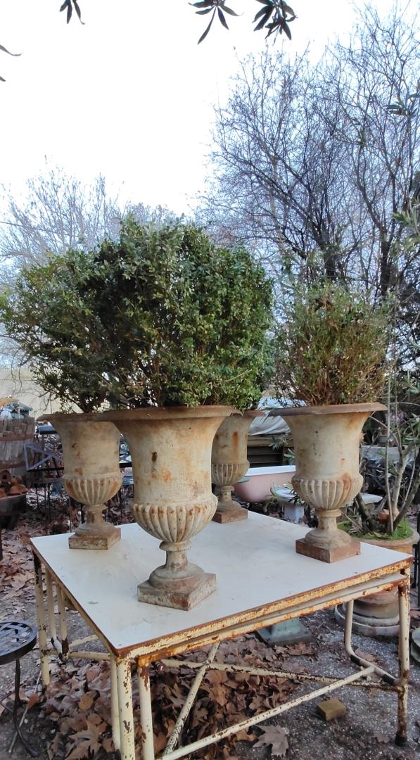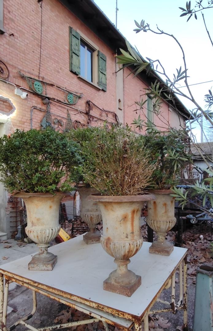 Quattro bei vasi in ghisa, qualche piccolo difetto su alcuni bordi esterni in alto,primi del 900