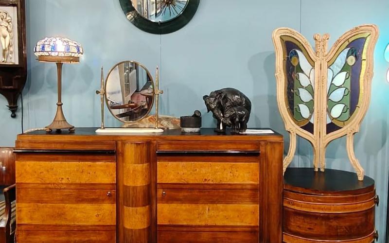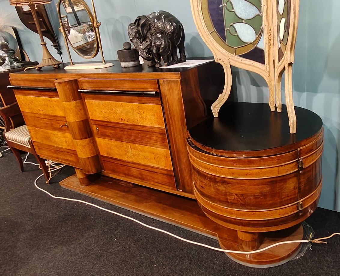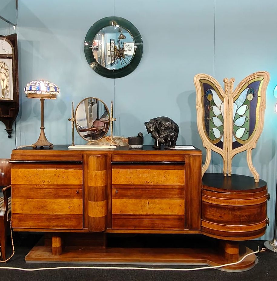 Bella credenza mossa Deco' in legno e radica, anni 40